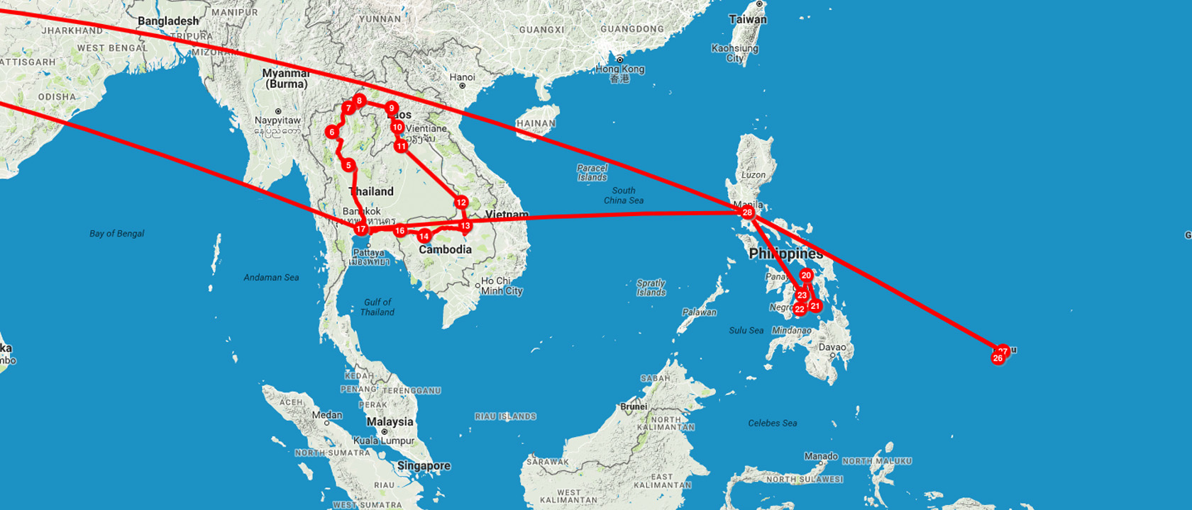 Fix ist: Wir brechen am 16.11.2016 auf in Richtung Bangkok. Genau einen Monat später geht es weiter in Richtung Philippinen wo wir auf drei Inseln dem Tauchen frönen werden. Der krönende Abschluss unsere Reise wird Palau sein. Palau gehört eigentlich nicht mehr zu Südost-Asien, sonder ist ein Südsee-Staat welcher der pazifischen Inselregion Mikronesien zuzuordnen ist. Am 20.01.2017 werden wir, mit hoffentlich vielen wunderbaren Eindrücken, zurück in der Schweiz sein.