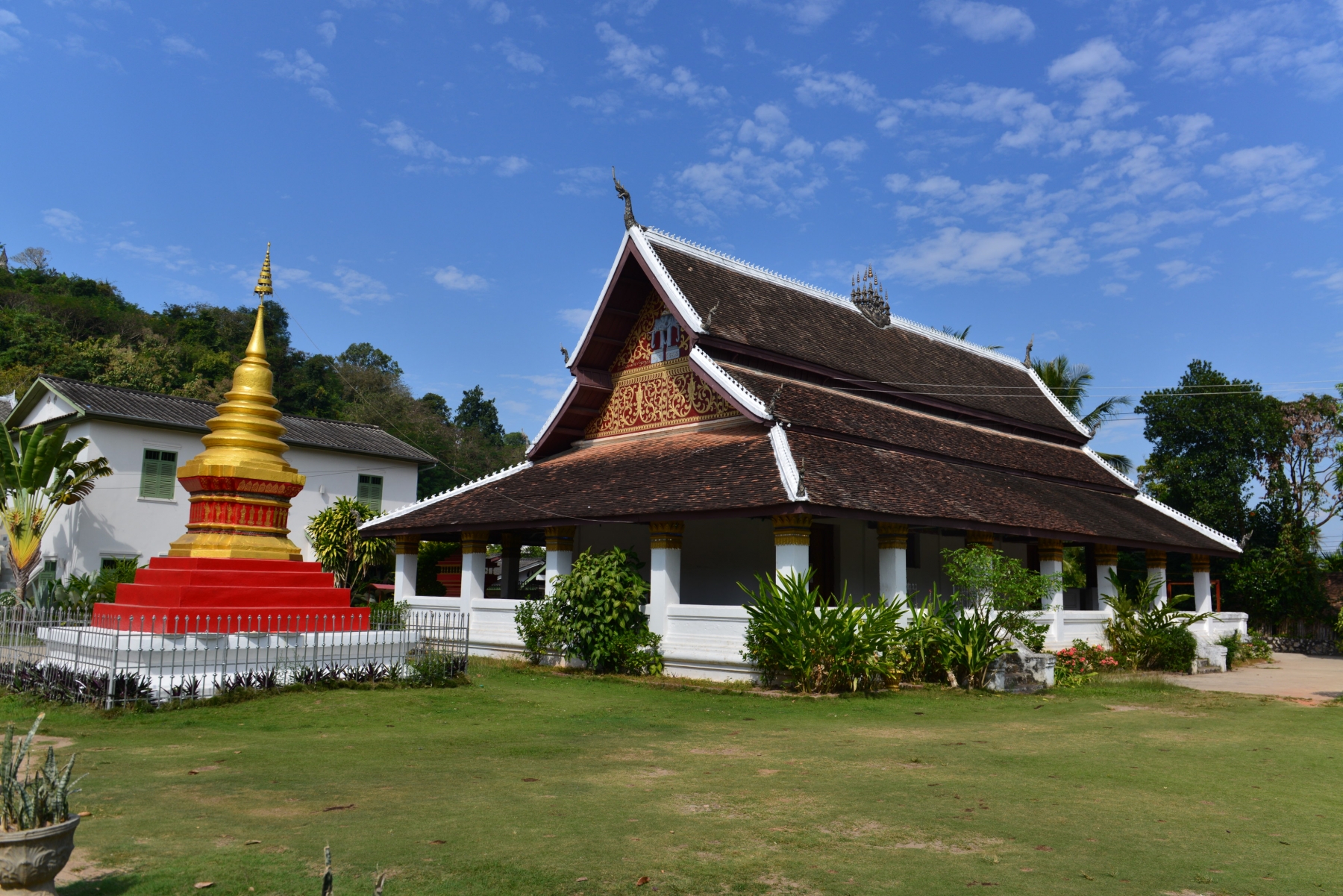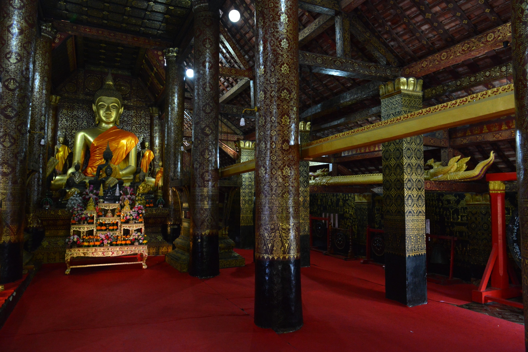 Auf der Sightseeing-Tour durfte natürlich auch der Wat Xieng Thong nicht fehlen. Als einziger Tempel der Stadt überstand er die Plünderung von 1887 unversehrt. Zudem ist der Baustil, mit dem fast bis auf den Boden reichenden Dach, typisch für das nördliche Laos.